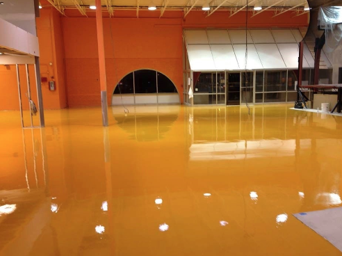 The HERMETIC™ Aircraft Flooring System is a high performance, self-leveling, resinous coating engineered for aircraft hangars and specialty aerospace floors such as NASA and the U.S. Armed Forces. This floor exhibits exceptional resistance to chemicals common in such environments including Skydrol fluids and other petrochemicals.